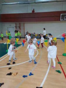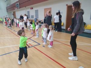 Pasibaigus „LTMŽ 2025“ I etapui, kuriame mažieji žaidynių dalyviai išbandė aštuonis virtualius fizinio aktyvumo užsiėmimus su skirtingais treneriais, II etapą pradėjome balandžio 9 d., organizuodami LTMŽ įstaigos festivalį netradicinėje aplinkoje – Kupiškio Lauryno Stuokos – Gucevičiaus gimnazijos sporto salėje. Į festivalį susirinko ikimokyklinio ir priešmokyklinio ugdymo grupių vaikučiai su mokytojomis, taip pat prisijungė ir vaikų mamytės. Visus susirinkusius festivalio dalyvius pasveikino atvykę svečiai – Kupiškio rajono kūno kultūros ir sporto centro direktorė Ingrida Tuskienė, Kupiškio mokyklos „Varpelis“ direktorė Daiva Pečiukėnienė ir pavaduotoja ugdymui Daiva Mergiūnienė. Vyko smagios ir įtraukiančios estafetės, skatinančios vaikų bendravimą ir bendradarbiavimą bei garbingą varžymąsi tarpusavyje. Festivalio pabaigoje visi mažieji dalyviai buvo apdovanoti LTMŽ diplomais.
