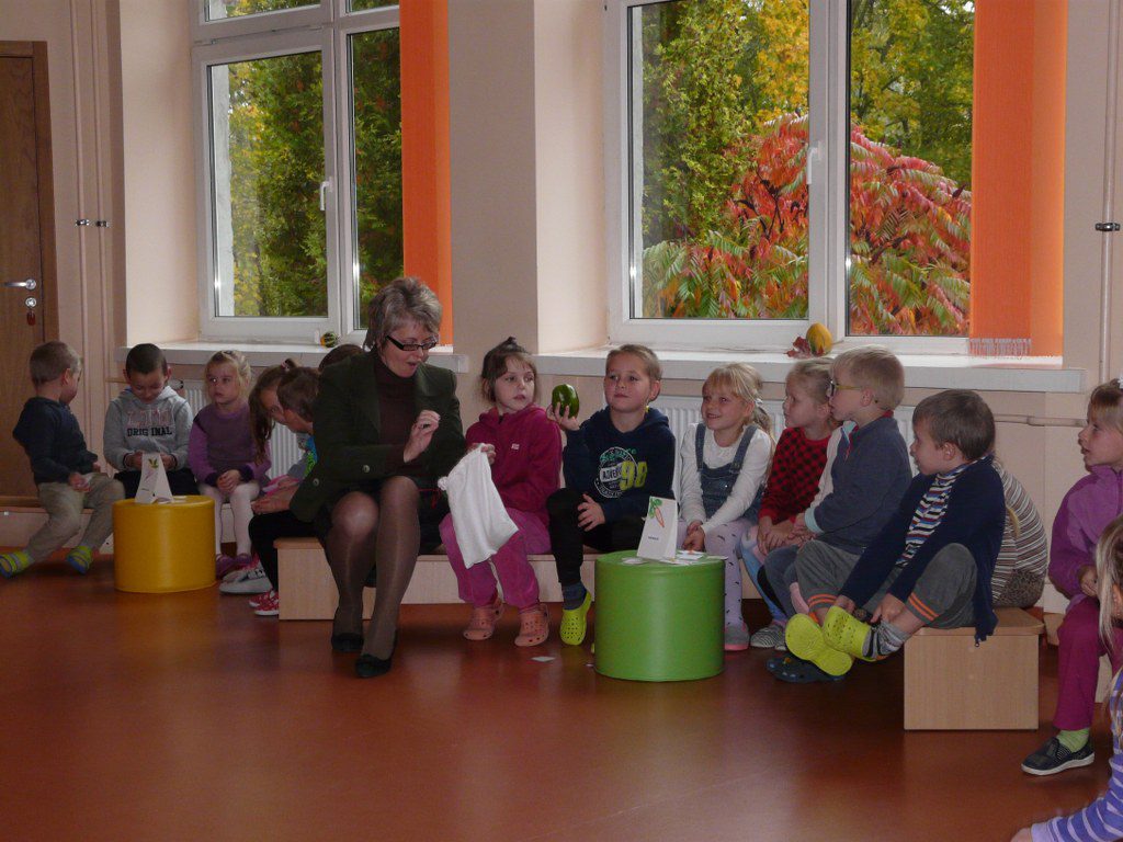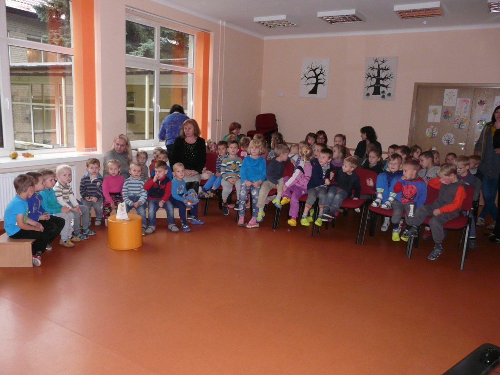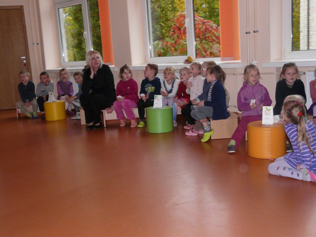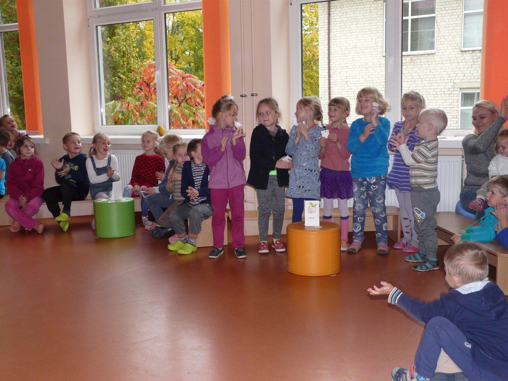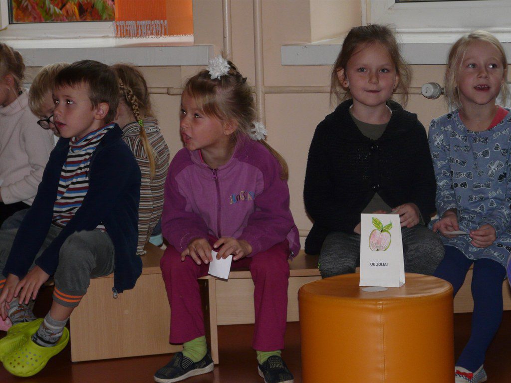 Penktadienį, spalio 7 dieną, visi susirinkome į salę, aptarti apklausos – tyrimo rezultatų, pasitikrinti žinias viktorinoje apie rudens gėrybes , daržovių ir vaisių naudą sveikatai. Pasigrožėti rudens gėrybių paroda , kūrybiniais vaikų darbeliais. Vaikai žiūrėjo darbuotojų parengtą lėlių teatro spektakliuką,, Obuoliuko Antano nuotykiai“.