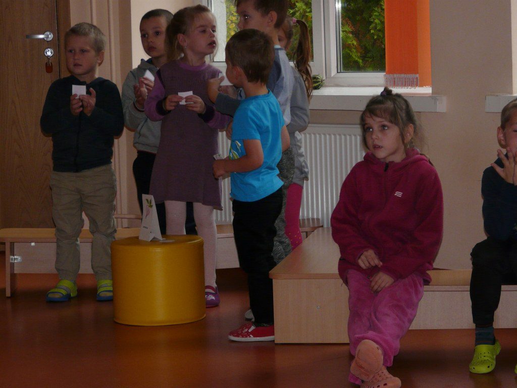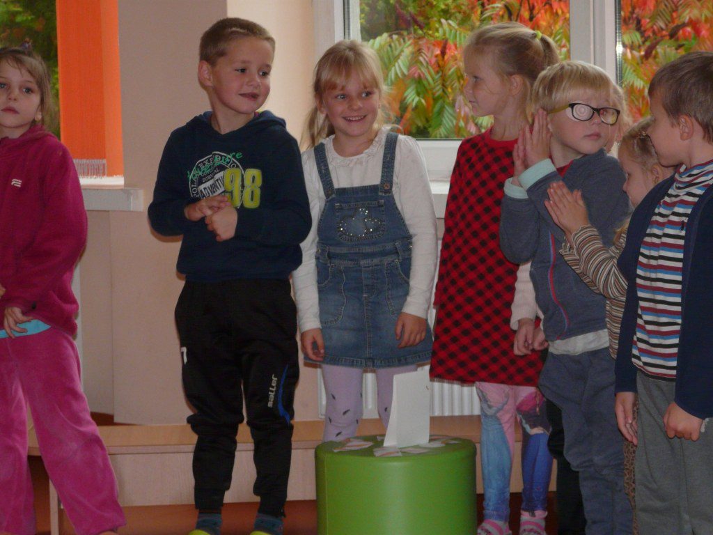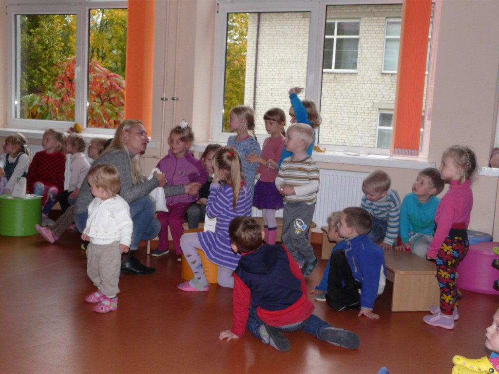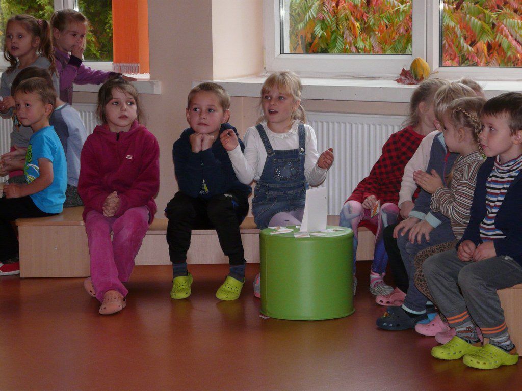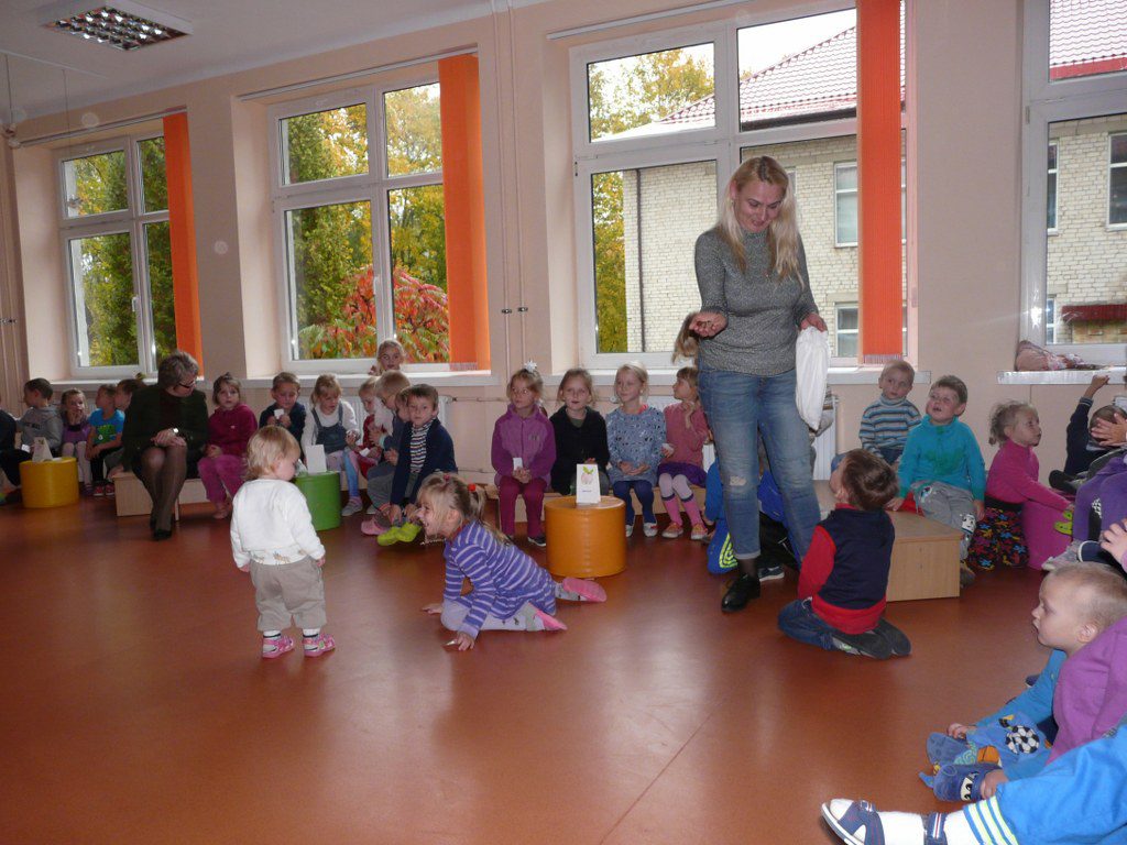Penktadienį, spalio 7 dieną, visi susirinkome į salę, aptarti apklausos – tyrimo rezultatų, pasitikrinti žinias viktorinoje apie rudens gėrybes , daržovių ir vaisių naudą sveikatai. Pasigrožėti rudens gėrybių paroda , kūrybiniais vaikų darbeliais. Vaikai žiūrėjo darbuotojų parengtą lėlių teatro spektakliuką,, Obuoliuko Antano nuotykiai“.