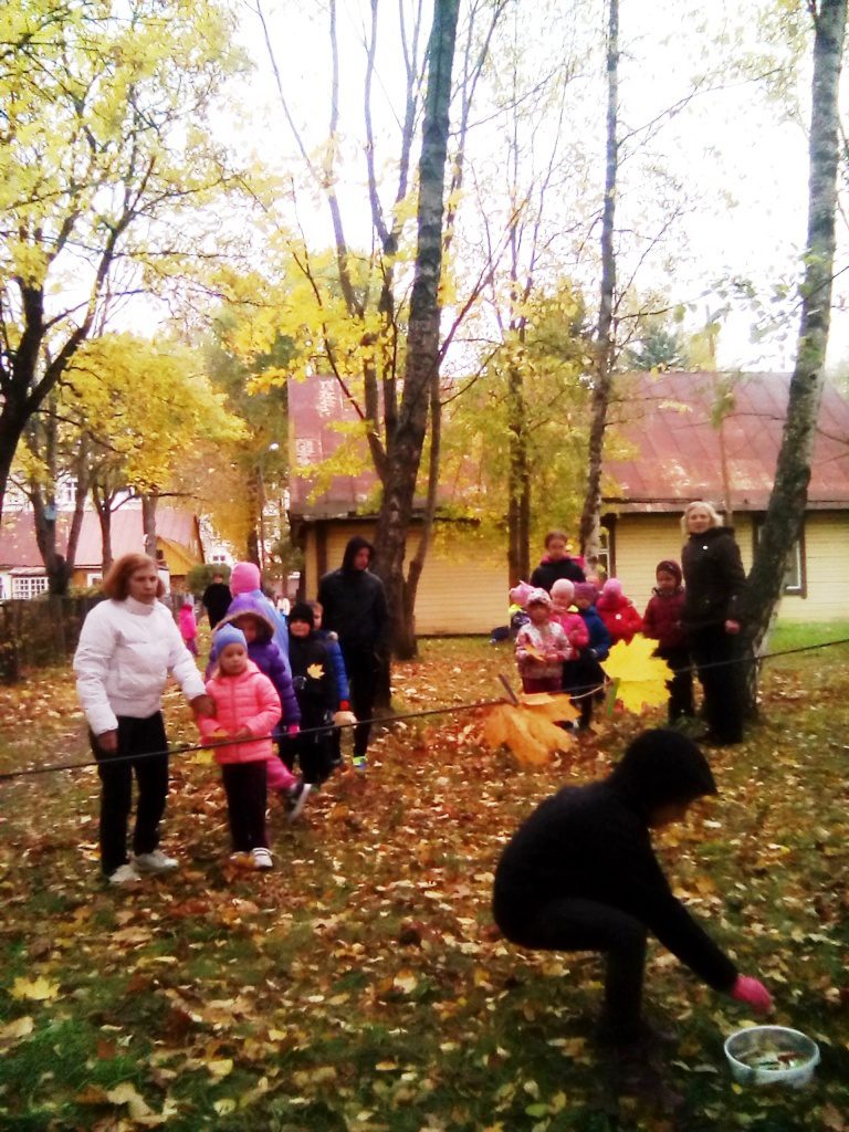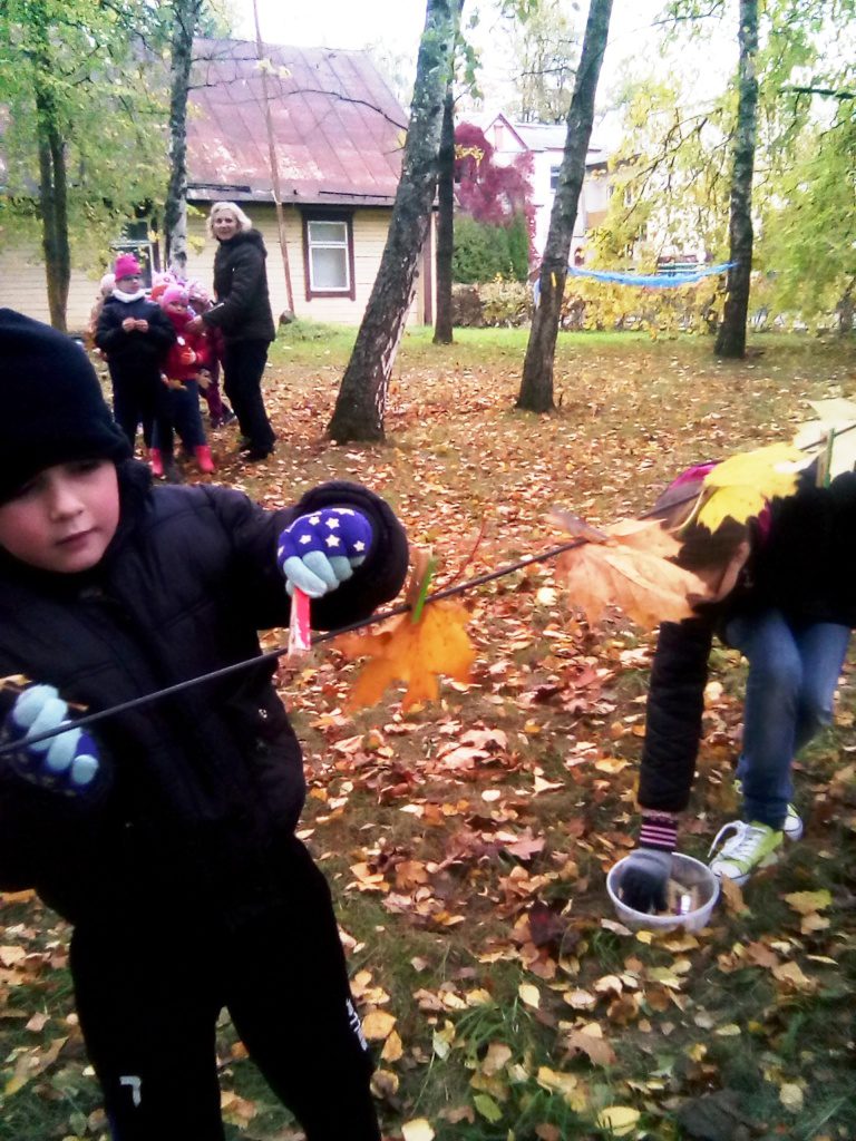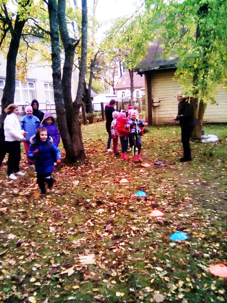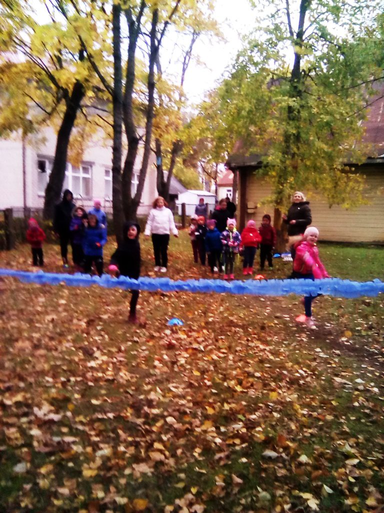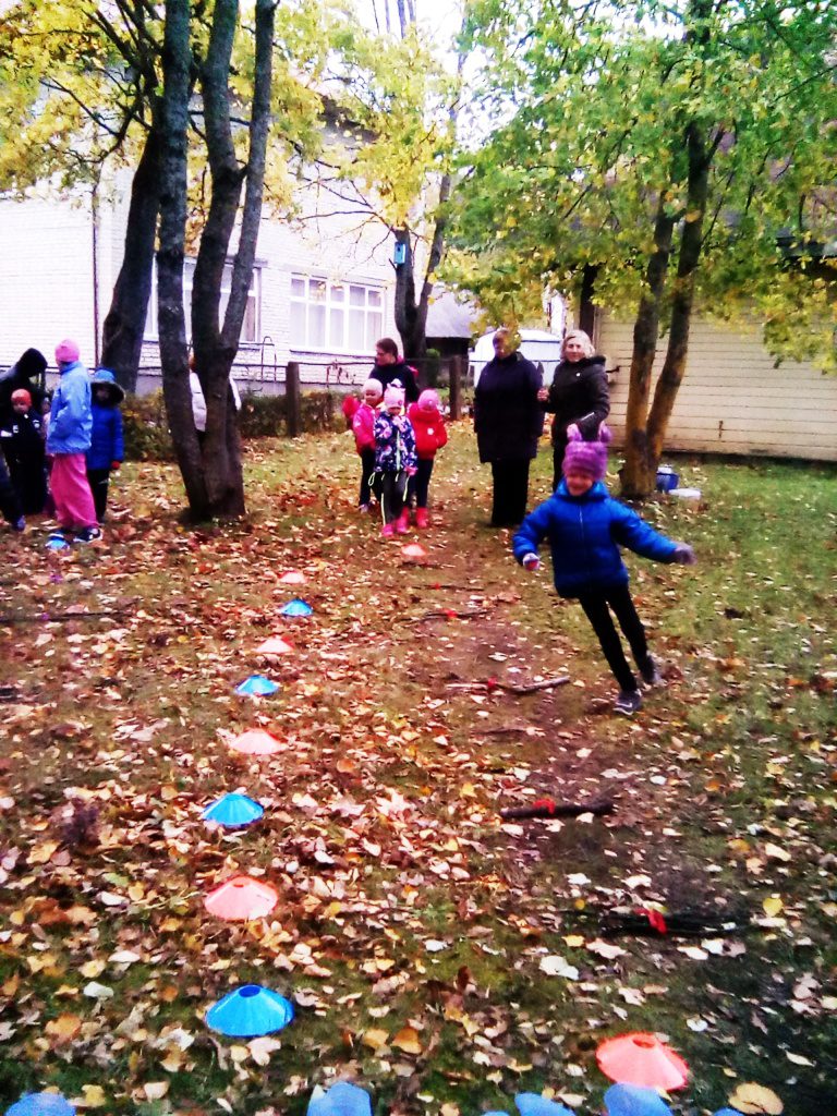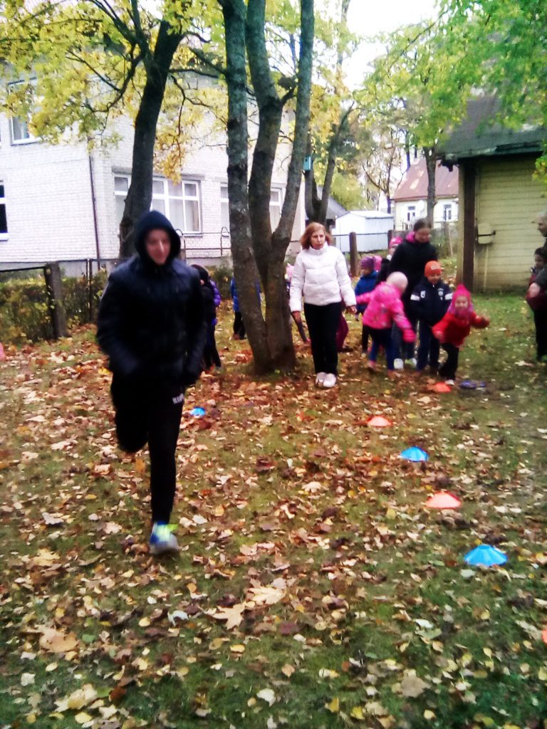 Aptarę, kaip elgsimės, kad visiems būtų gera ir saugu, įsijungėme į sportinę veiklą. Panaudodami gamtinę aplinką ir gamtinę medžiagą, atlikome daugybę užduočių. Vaikams reikėjo pernešti kaštoną su mediniu šaukštu, pridėti į korelį gilių, prisegti medžio lapą su segtuku, permesti kankorėžį, pereiti kliūtis. Abiejų komandų vaikai stengėsi kuo greičiau ir tiksliau atlikti užduotis. Visi jaunieji sportininkai buvo apdovanoti, nes šioje sportinėje veikloje nugalėjo draugystė. Kartu sportuodami vaikai patyrė daug teigiamų emocijų, sustiprėjo fiziškai, pajuto bendrumo jausmą, pratinosi laikytis žaidimų ir estafečių taisyklių, noriai bendravo vieni su kitais