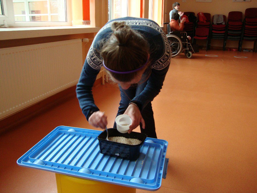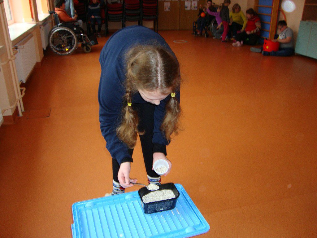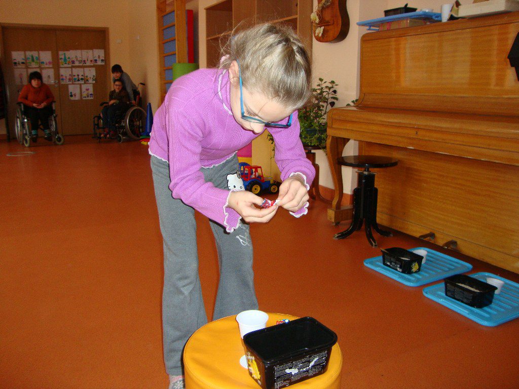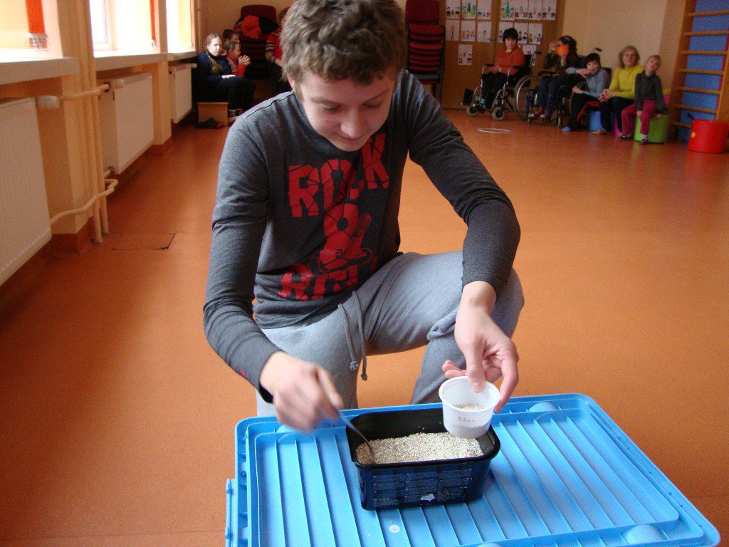 ,,Išlukštenk saldainius”, ,,Išsemk kruopas”, ,,Padžiauk skalbinius”, ,,Sumauk žiedus”,