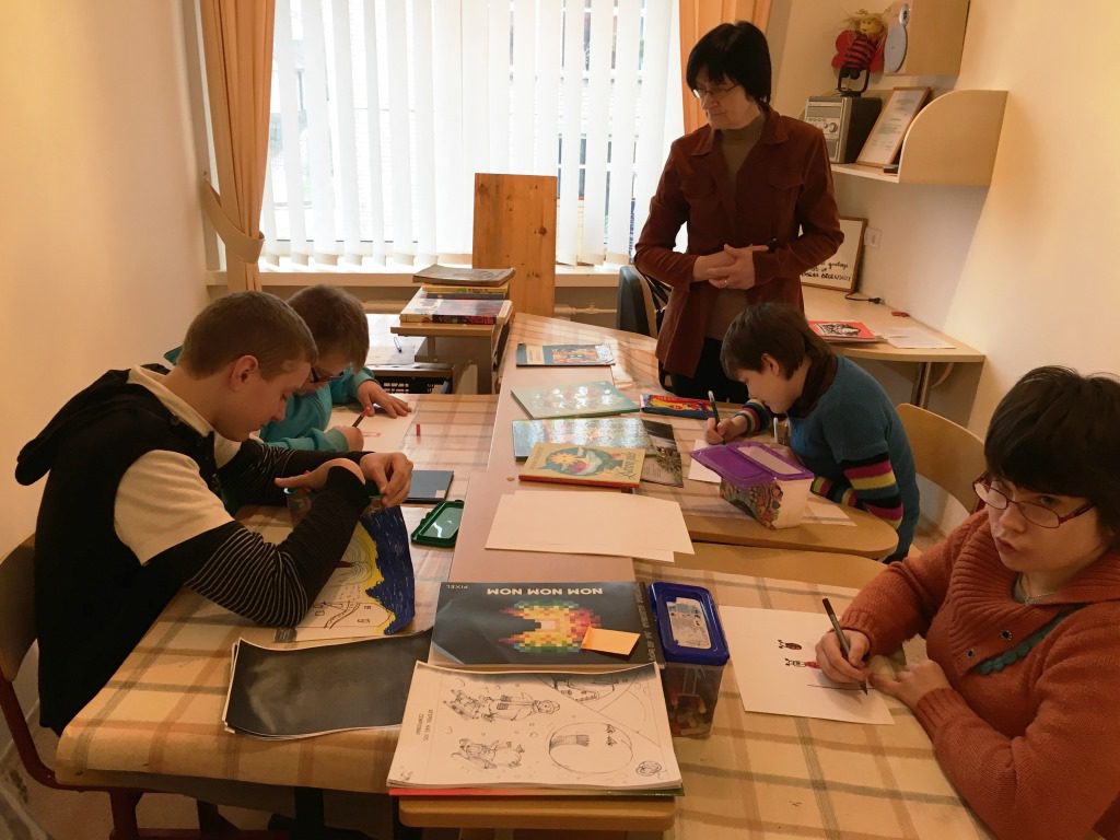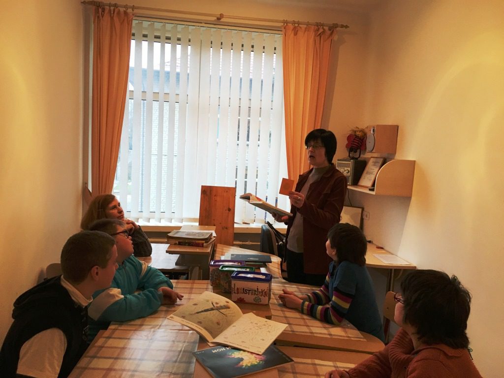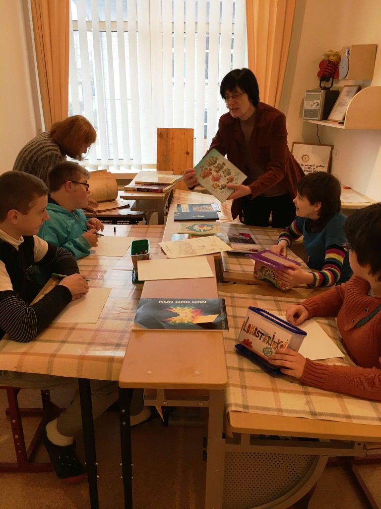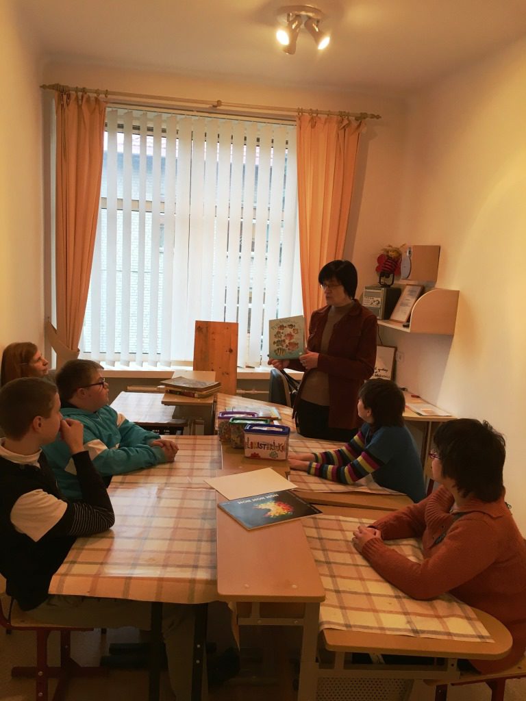 Lapkričio 23 d. pas 9-10 lavinamosios klasės mokinius {specialioji pedagogė Laura Velutienė, auklėtoja Nijolė Krasovskaja} atvyko viešnia iš Kupiškio viešosios bibliotekos vaikų literatūros skyriaus Laimutė Kliopkinienė. Veikla vyko dailės kabinete. Viešnia mokiniams pristatė knygas su įvairių dailininkų iliustracijomis, papasakojo apie dailininkus. Vaikai susidomėję vartė knygas, atidžiai apžiūrinėdami kiekvieną piešinį, po to patys piešė jiems labiausiai patikusios knygos iliustracijas. Baigę darbą, pasidžiaugė savo ir draugų darbais. Atsisveikindama Laimutė pakvietė vaikus su tėveliais, pedagogais lankytis bibliotekoje, draugauti su knygelėmis, pažinti magišką pasakų ir įvairiausią rašytojų sukurtų istorijų pasaulį. Vaikai į klasę grįžo pilni įspūdžių ir gerų emocijų.