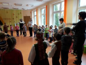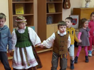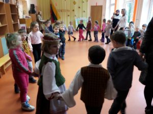 Mokyklos salėje aidėjo džiugus vaikų klegesys, švęsti Lietuvos gimtadienio atskubėjo draugai ,,Pelėdžiukai“ kartu su savo auklėtojomis iš ,,Saulutės‘‘ lopšelio – darželio. Vasario 16-osios paminėjimą pradėjome klausydami iškilmingos V. Kudirkos ,,Tautiškos giesmės‘‘. Apie tautinių kostiumų savitumą pasakojo logopedė Liudvika. Vaikai linksmai dalyvavo viktorinoje ,,Mano šalelė Lietuva‘‘, aptarė Lietuvos valstybės simbolius, savo gimtojo miesto bei Lietuvos sostinės žymiąsias vietas, dėliojo dėlionę ,,Mano Lietuva‘‘, vardijo miestų pavadinimus. Vaikai tarmiškai, kupiškėnų tarme sekė pasakas be galo. Auklėtoja Ina suvaidino pasaką ,,Kiškio lūpa plyšo‘‘. Šventinį šurmulį pagyvino lietuvių liaudies žaidimai. Už teisingus komandų atsakymus širdelėje iš gėlyčių Mantas ir Eimantė sudėliojo Lietuvos valstybės vėliavą. Išsiskirdami vaikai draugams padovanojo draugystės apyrankes. Tikimės, kad tai skatins tolimesnį vaikų domėjimąsi papročiais, tradicijomis, brandins tautiškumą, pilietiškumą, meilę Tėvynei.