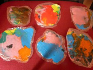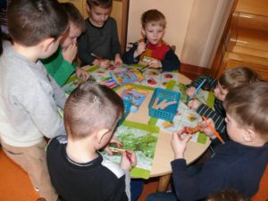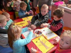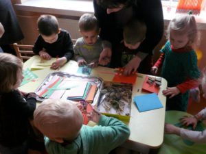 Smagiai pabendravę , ėmėmės įvairiausių darbų. O kiek įdomiausių sumanymų išvydome : vieni pynė virves, kiti iš siūlų rišė lėlytes, pynė padėkliukus, lipdė iš molio, gamino paveikslus iš sagų, iš ledų pagaliukų konstravo lėktuvėlius, smagus klegesys rodė, jog veikla labai patiko ir sudomino.
