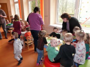 Ir pagaliau sugužėjome į salę, kur apie senovinius amatus visiems papasakojo priešmokyklinio ugdymo pedagogė Daina Šimėnė. Vaikai paporino pasakojimų, mįslių kupiškėniška tarme, kurią dauguma jau esame ir primiršę….