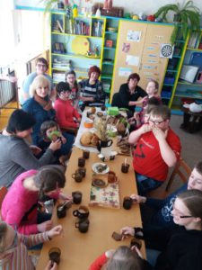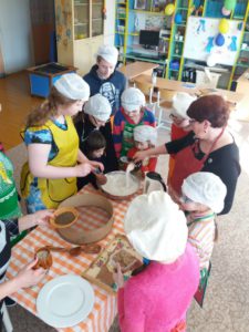 Balandžio 3 dieną lavinamųjų klasių auklėtojos Irena Aleknienė ir Gelmina Mudrauskienė kartu su auklėtinių tėveliais surengė popietę ,, Mano rankoj duonos riekelė“.