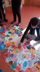 Balandžio 18-osios rytą „Varpelio“ mokyklos ugdytiniai susibėgo pasidžiaugti ridenamais margučiais, pašokti ratelyje, pasisupti. Įtvirtinome šv. Velykų papročių suvokimą. Visi kartu išpuošėme didelį margutį „Vaikų Velykėlių“ konkursui, kurį organizuoja Naisių vasara.