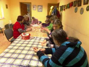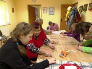 Mokiniai susidomėję stebėjo aplinką, kuri buvo paruošta taip, kad vaikai galėtų dirbti darbelius iš modelino. Lipdymas- terapija, kuri ramina, harmonizuoja ir išlaisvina kūrybines galias. Mokiniai kibo į darbą. Jiems padėjo šalia esantys suaugusieji. Padarė rėmelius piešiniams. Visi labai stengėsi ir dirbo ne tik rankomis, bet visa savo jausmų ir nuotaikų palete. O visų nuotaika buvo puiki, tvyrojo gerų emocijų atmosfera. Dirbdami juokavome, bendravome, dalinomės išvykos prie marių įspūdžiais. Atsidėkodami vyresniems draugams įteikėme įrėmintą piešinėlį. Gavome ir mes dovanų – dekupuotą vazelę. O vienas iš lankytojų palinkėjo mums stiprios sveikatos ir padovanojo žurnalą „Man rūpi sveikata“. Grįžę į mokyklą ugdytiniai dar ilgą laiką vieni kitiems pasakojo ką matė, išmoko, sužinojo, kas labiausiai patiko.