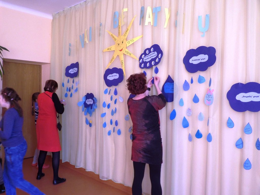 Kaip ir kiekvienais metais, taip ir šiemet, mūsų mokykla prisidėjo prie iniciatyvos – veiksmo savaitė „Be patyčių“, kurią organizavome 2018 m. kovo 19– 23 dienomis. „Be patyčių“ metu renginiuose dalyvavo visa mokyklos bendruomenė. Mokiniai, vaikai visą savaitę kalbėjo apie gerumą, toleranciją, draugiškus tarpusavio santykius. Siekėme padėti vaikui būti palankiam kitiems ir tikėtis kitų palankumo, suprasti draugiškumo ženklus bei parodyti savo draugiškumą žaidžiant, veikiant. Buvo prisimintos ir aptartos klasės, grupės elgesio taisyklės. Namuose vaikai su tėveliais gamino lietaus lašelius, kuriuose užrašė žodžius apie daugystę. Visą savaitę dalinęsi gerumu, penktadienį su savo mintimis ir namuose, kartu su tėveliais padarytais lietaus lašeliais, visi susirinkome į salę. Diskutavome apie draugus, patyčias, supratimą, draugiškumą. Dainavome draugystės daineles, žiūrėjome filmukus apie daugystę, Pedagogai pristatė vaikų namų darbus, kuriuos perskaitę sukabino prie debesėlių. Po renginio dalyviai buvo apdovanoti padėkos raštais už puikų elgesį, draugiškumą, pagalbą grupės draugams, aktyvų dalyvavimą Veiksmo savaitėje ,,Be Patyčių 2018“. Šios akcijos metu bendruomenė siekė puoselėti pagarbius, draugiškus santykius tarp vaikų, suaugusiųjų, formuoti vertybines nuostatas nepalankias patyčioms. Renginiai praėjo šiltoje ir draugiškoje aplinkoje. Tikimės, kad draugystės savaitės metu mūsų vaikų įgyti gebėjimai padės jiems suprasti savo ir draugų jausmus bei emocijas, jas išreikšti ir valdyti, bendrauti vadovaujantis pozityviu požiūriu, o prireikus, rasti tinkamus konflikto sprendimo būdus. Nuoširdžiai dėkojame tėveliams, bendruomenei, vaikams, mokiniams noriai įsijungusiems į šią veiklą.