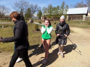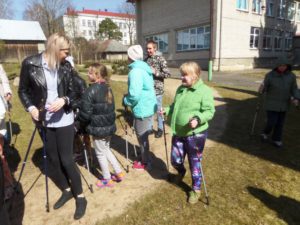 Tuo puikiausiai įsitikino ir mūsų įstaigos mokiniai bei pedagogai. Pasikvietę Visuomenės sveikatos biuro specialistes Ugnę Kirdaitę ir Dovilę Šukytę dalyviai leidosi į susipažinimą su šiaurietišku ėjimu. Atvykusios specialistės visiems išdalino šiaurietiško ėjimo lazdas ir pravedė apmokymus, kaip taisyklingai turėtumėme vaikščioti. Nors iš pažiūros šis užsiėmimas atrodė paprasčiausias vaikščiojimas, tačiau išgirdę taisykles, kaip tai reikia daryti tinkamai, visi suprato, jog tai ne toks jau ir paprastai įgyvendinimas dalykas. Tokį intensyvų vaikščiojimą mokyklos mokiniai ir pedagogai, padedami ir pakonsultuojami specialisčių, tęsė visą savaitę, išvaikščiojo visus Kupos parko takelius. Visi buvo labai susižavėję naujai atrasta, įdomia veikla, po užsiėmimų grįždavo pavargę, bet pasibuvę gryname ore kartu su bendraminčiais ir pasisėmę gerų emocijų.