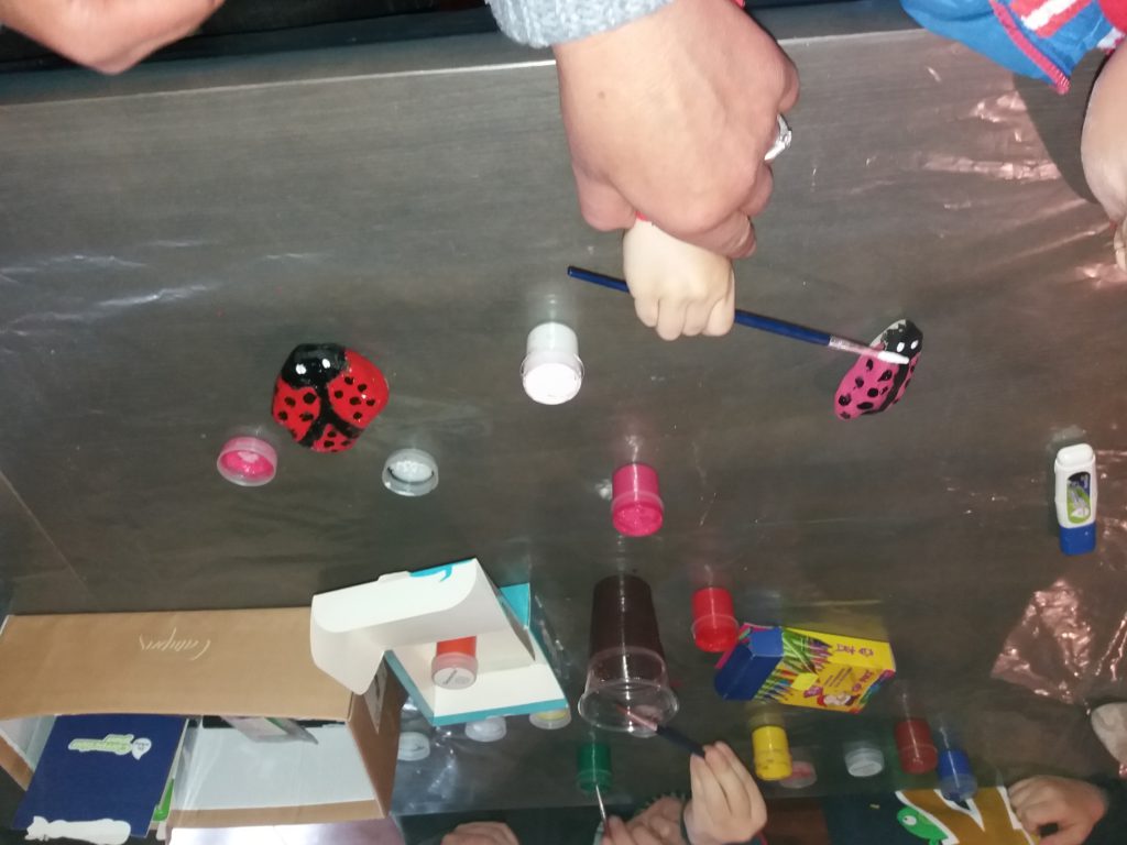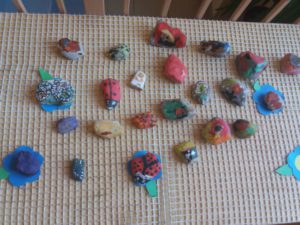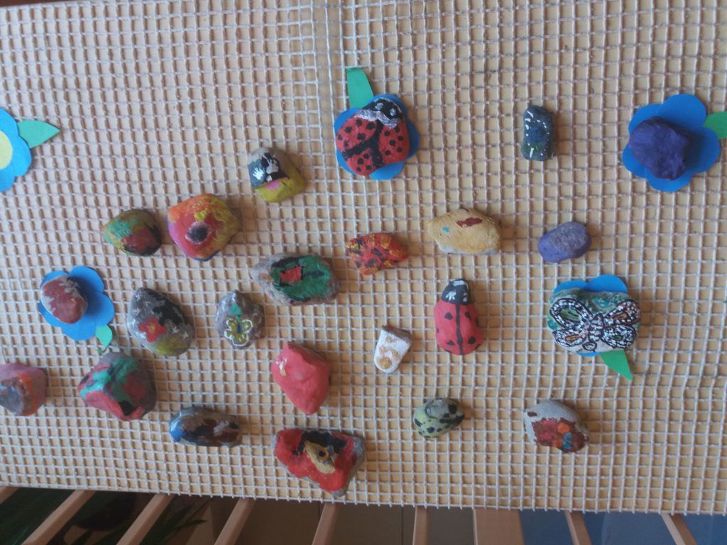 Gavę reikiamas priemones, vaikai ir tėveliai ėmėsi darbo – kūrė, piešė, fantazavo. Akmenukai pakeitė savo išvaizdą – tapo spalvoti, žaismingi.