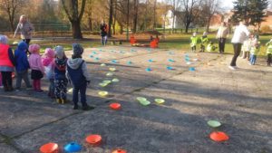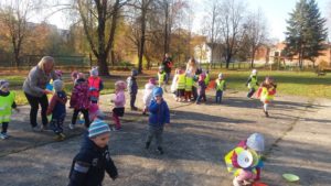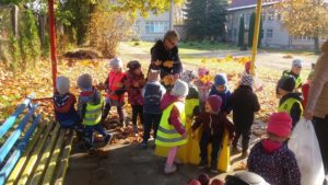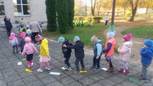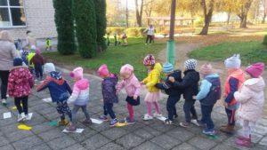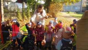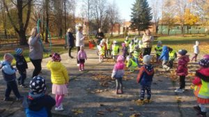 Spalio 17 dieną ,,Kodėlčiukų‘‘ grupės vaikai ir auklėtojos sulaukė draugų ,,Pelėdžiukų‘‘ iš Kupiškio darželio „Saulutė“. Linksmai žaisdami susipažinome su draugu „Šypsniuku“, pasimankštinome lauke klausydami nuotaikingos muzikos, „pėdutėmis“ keliavome takeliu, nuklotu medžių lapais, klausėmės jų šlamesio, grožėjomės rudeniniška gamta. Žaidėme komandinius žaidimus „Surink medžių lapus“, „Pagauk ir uždėk“, „Papuošk pavėsinę“ ir kt. Draugus vaišinome žolelių arbata ir obuoliais.
