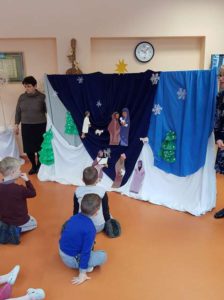 Su trijų karalių atėjimu baigėsi šventinis Kalėdų laikotarpis. „Varpelio“ mokyklos ugdytiniai atsisveikino su eglute palydėdami snaigių taku giesmelėmis, dainelėmis, žaidimais.