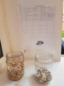 Vykdome ir ilgalaikį stebėjimą kaip keičia formą pupelės, esančios vandenyje ir visiškai nesikeičia esančios sausai.