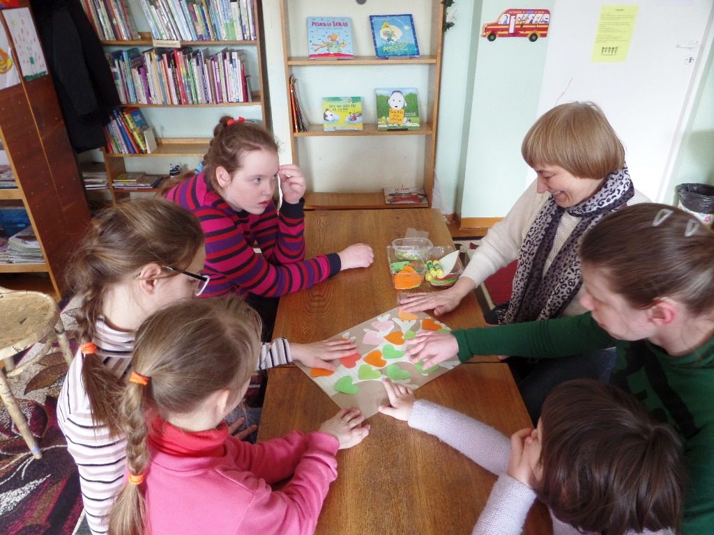 Kovo 21 dieną, 1-9 lavinamųjų klasių mokiniai, spec. pedagogės Loreta Madeikienė, Lina Kuklinskienė, auklėtoja Nijole Krasovskaja ir mokytojos padėjėja Lina Vaitonienė, vykome į biblioteką, į edukacinę valandėlę „Esu tau draugas – būki juo ir tu!”. Edukacinės valandėlės metu Vaikų literatūros skyriaus bibliotekininkė Laimutė Kliopkinienė skaitė vaikams knygeles apie pavasarį, draugus, draugystę. Vaikams labai patiko bendra kūrybinė veikla „ Draugystės medis“, pasirinktų figūrų aplikavimas iš širdelių. Didelio susidomėjimo suteikė pasakos kūrimas. Valandėlės metu atkreipėme vaikų dėmesį į patyčių problemą. Mokėmės draugauti ne tik su žmonėmis, bet ir su gyvūnais. Po veiklos Laimutė pakvietė prie arbatos puodelio. Vaikai džiugiai dalijosi patirtais įspūdžiais. Pasidarytus darbelius parsinešėme į mokyklą . Bibliotekoje patyrėme daug džiugių akimirkų. Už jas nuoširdžiai dėkojame išradingai ir kūrybingai bibliotekos darbuotojai Laimutei.