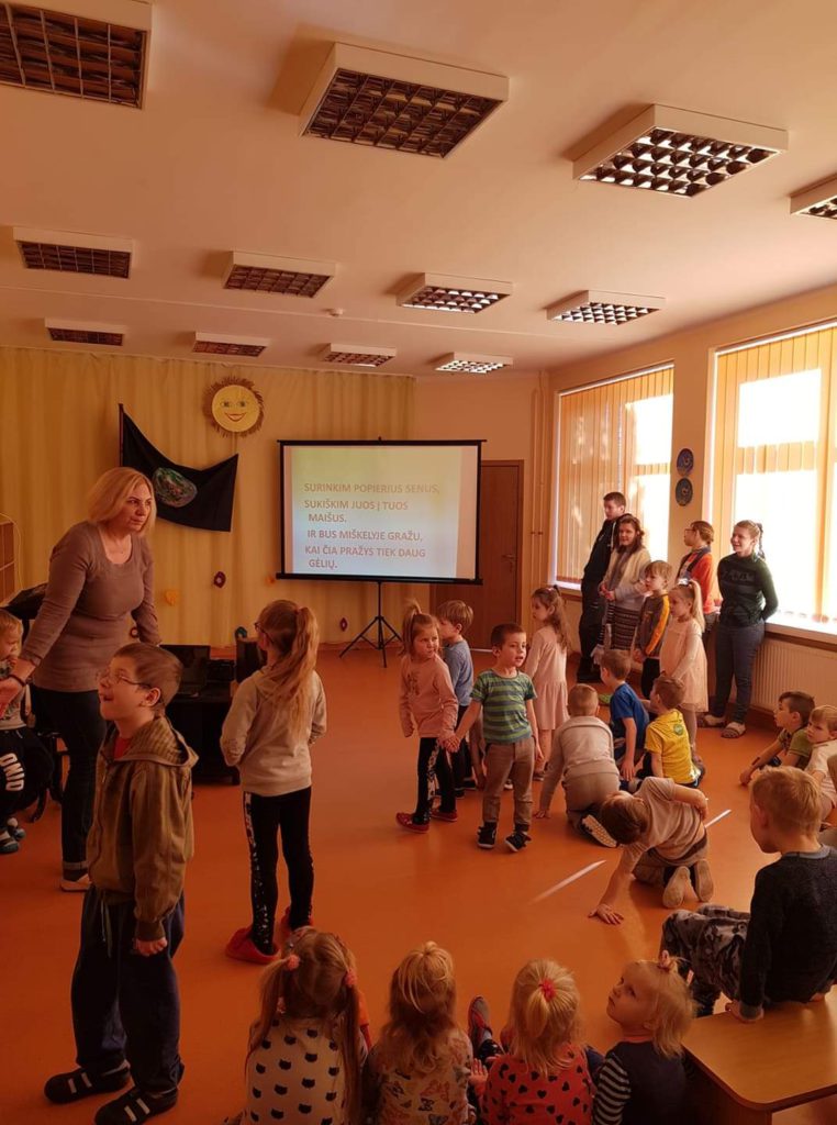 Buvo organizuota piešinių paroda „Mano namai – dorybių Žemė“, Angeliukų gr. vaikučiai šoko „Šokį Žemei“, auklėtoja Daina pateikė grupių vaikams žaismingas užduotis apie atliekų rūšiavimą, dainavome linksmas daineles apie pavasarį, žaidėme žaidimus. Kodėlčiukų gr. auklėtojos visą mokyklos bendruomenę pakvietė dalyvauti akcijoje „Apkabink medį“. Mokyklos kieme iškėlėme Žemės vėliavą, vaikai padovanojo medeliams savo šalikėlius su pirštinėmis juos „apkabindami“, taip išreikšdami savo rūpestį ir globą visai gyvajai gamtai. Ne tik vaikai, bet ir saulutė džiaugėsi gražiu renginiu, dovanodama nuostabų orą, džiugią nuotaiką.