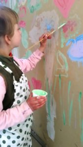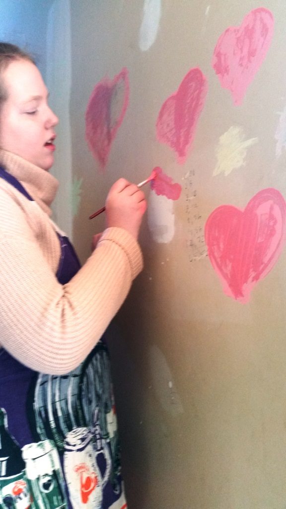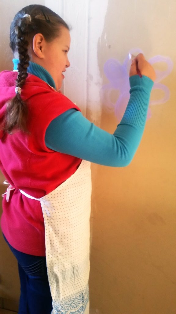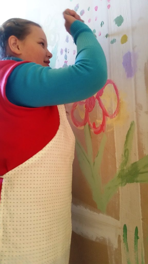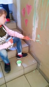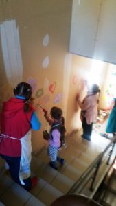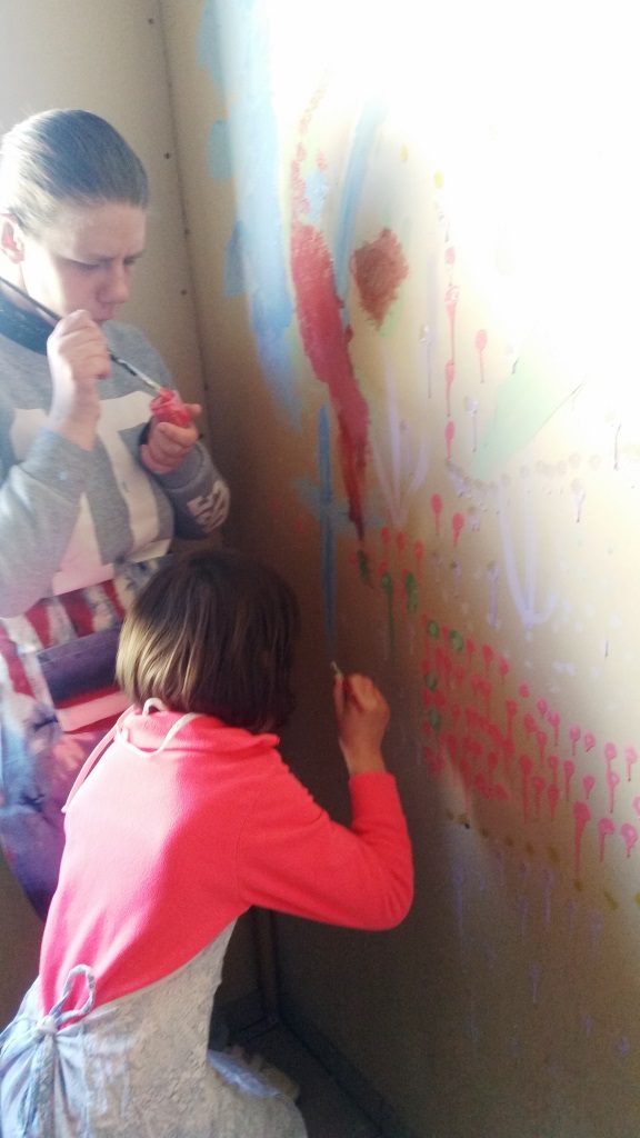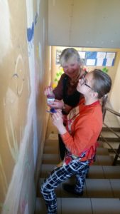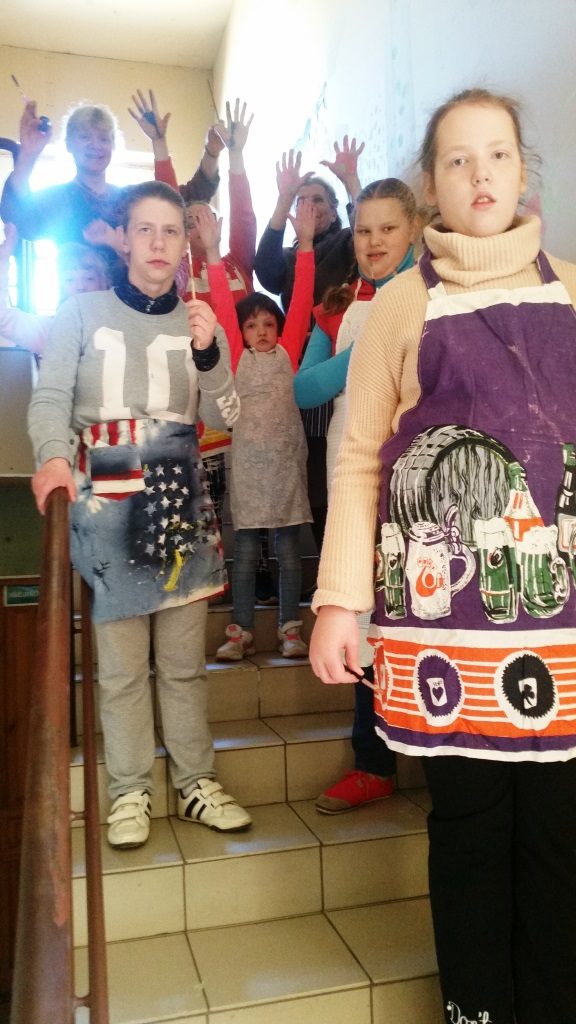 Projektinė veikla praplečia ugdymosi erdvę, aktyviau įtraukia bendruomenės narius – ugdytinius, pedagogus į aktyvią veiklą, leidžia atsiskleisti ugdytinių gebėjimams, labiau pasitikėti savimi. Siekiant aktyvinti bendradarbiavimą su Kupiškio krašto žmonių su negalia sąjunga, gražią gegužės 9 d., 1-9 lavinamųjų klasių mokiniai, lydimi spec. pedagogės Linos Kuklinskienės, auklėtojos Nijolės Krasovskajos, vykome pas juos bendrai kūrybinei veiklai. Šiuo projektu buvo siekiama ugdyti draugiškus vaikų ir pagyvenusių žmonių tarpusavio santykius, plėtoti mokinių draugystės supratimą. Vykdėme akciją „Papuoškime įstaigos sienas“. Mokiniai, vadovaujami dailės mokytojos Rūtos Aižinienės, į rankas ėmė teptukus ir, kaip tikri dailininkai, pradėjo darbą. Piešėme guašu ant įstaigos laiptinės sienų. Darbas pavyko puikiai. Visi džiaugėmės rezultatu. O kiek džiugių emocijų mums suteikė Rūta, padovanojusi jos pieštą paveikslą.