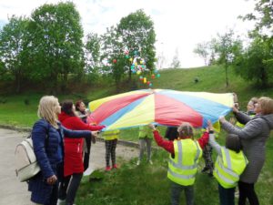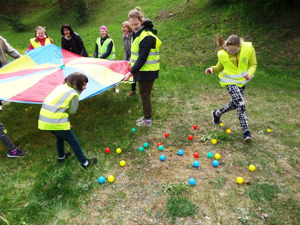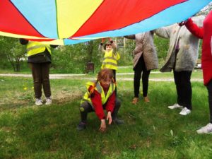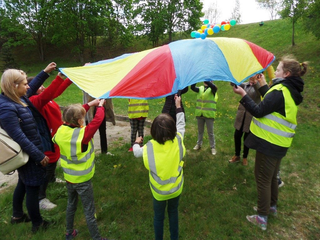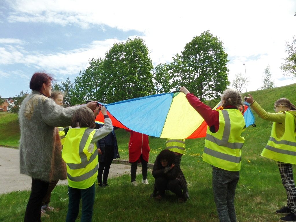 Vaikystė yra gražiausias ir dažnai geriausias žmogaus gyvenimo laikotarpis, ji kupina emocijų, ieškojimų ir atradimų, neužmirštamų įspūdžių. Patirti tokių įspūdžių, gegužės 16 d. 1-9 lavinamųjų klasių mokiniai, lydimi pedagogų Linos Kuklinskienės, Loretos Madeikienės, Nijolės Krasovskajos, mokytojos padėjėjos Linos Vaitonienės, leidosi ieškoti paslėpto lobio. Parke mūsų laukė bibliotekininkės Laimutė Kliopkinienė, Rūta Vilkienė. Laimutė supažindino vaikus su pieštu žemėlapiu, „kurį rado bibliotekos senovinėje knygoje“. Šiame žemėlapyje vaikai ieškojo vietos, kur paslėptas lobis. Nieko nelaukdami bėgo to lobio ieškoti. Kiek buvo džiaugsmo, juoko, gerų emocijų, kai rado paslėptą lobį. Kad vaikai galėtų jį pasidalinti , turėjo atlikti užduotį. Rūta pasiūlė pažaisti judrųjį žaidimą „Linksmasis parašiutas“. Šis žaidimas visiems suteikė džiaugsmo, žadino smagią, žvalią nuotaiką. Pavargę, tačiau linksmi, su džiugia nuotaika, susėdome ant suoliukų, vaišinomės, dalinomės patirtais įspūdžiais. Ši veikla buvo įdomi, netradicinė, kitokia.