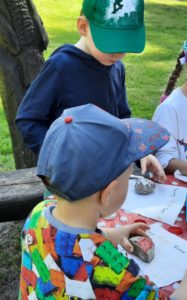 Edukacinėmis veiklomis labiausiai ugdomas vaikų kūrybiškumas, įtvirtinami bendrieji įgūdžiai, stiprinamos kompetencijos, plečiamas akiratis. Gražų, saulėtą gegužės 24 – osios rytą „Vaivoriukų” grupės vaikučiai autobusu išvyko į Uoginių amatų centrą. Čia juos pasitiko edukatorė Jolanta Knizikevičienė, kuri pakvietė mažuosius į edukacinę veiklą ,,Lauko akmenėlis – pirmas kūrinėlis‘‘. Vaikai pasitelkę vaizduotę, piešė ant akmenėlių, išbandydami įvairias technikas. Turėjome galimybę aktyviai praleist laiką gamtoje, pavaikščioti „Basų kojų taku|”, pasiklausyti paukštelių čiulbėjimo, pasigrožėti žydinčiais augalais. O labiausiai vaikučių laukiamas momentas buvo pasivaišinti tėvelių įdėtais užkandukais.