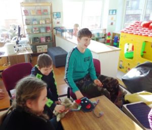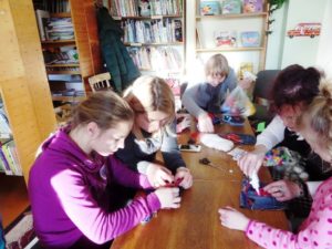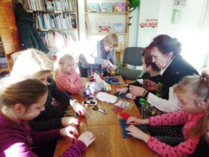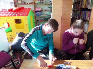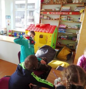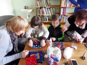 Ar jūs žinote, kas yra linksmorijos ? Tai linksmos istorijos iš Ingos Kanišauskės knygelės „ Linksmorijos. Linksmos istorijos ir idėjos kūrybai“. Paklausite – kam jos mums? Ogi tam, kad knygoje suradę kūrybinių idėjų, dalintumės linksma akimirka, išlaisvintume vaizduotę arba tiesiog smagiai pabūtume. Susidomėję istorija apie „Džinsų kišenę, kurioje tvyro vien gėris“, kurią papasakojo bibliotekininkė Laimutė, nutarėme įgyvendinti savo kūrybines idėjas. Spec. pedagogės Loreta, Lina, mokytojos padėjėja Lina, auklėtoja Nijolė, su 1-7 lavinamųjų klasių mokiniais, iškeliavome į biblioteką, kur mūsų jau laukė bibliotekininkė Laimutė. Procesas tikrai buvo smagus. Vaikai su pedagogais ne tik kūrė džinsines pirštinines lėlės – Martynas ir Kajus suvaidino savą istoriją apie gerumą. Nutarėme “ džinsų miestelio“ gyventojus dar ne kartą panaudoti savo veiklose. Tegul džinsų kišenėse slepiasi ne tik saldainiai, pieštukai, bet ir pamokančios istorijos. Draugaukime, būkime geri ir atidūs vieni kitiems.