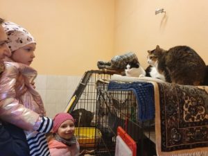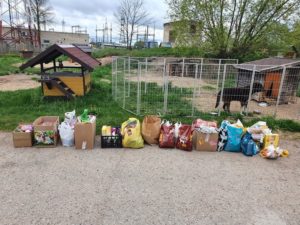 Ir štai, atėjo diena, kai mokyklos atstovai visas surinktas gėrybes autobusu nugabeno į Utenos gyvūnų globos namus, kur darbuotoja juos maloniai priėmė, suteikė galimybę susipažinti gyvai su priglaustais šunimis ir katėmis, papasakojo įdomių istorijų. Įspūdžių buvo daug ir visokių, pirmiausia – atjauta, gailestis nuskriaustiesiems, nusivylimas neatsakingais žmonėmis, kurių neapgalvoti poelgiai sukėlė daug kančių gyvūnams ir ,žinoma, meilė pūkuotiems padarėliams, kurie tikrai jos labai nusipelnė.