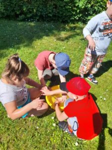 Net netikėjome, kad tiek teigiamų emocijų pavyks patirti! Vaikams labai patinka STEAM veiklos su vandeniu skambant smuzikai. Daug džiaugsmo ir puikių įspūdžių suteikė grojimas muzikinėmis taurėmis, kaip smagu buvo išgavus švelnią melodiją. Interaktyvių grindų pagalba ,,braidėme” po vandenį , bangavome greičiau ir lėčiau, pataikydami į ritmą. Veiklą tęsėme lauke, pasitelkdami vandenį. Klausėmės, kokie garsai girdisi pilstant, taškant, maišant , pritarėme muzikai teškenimu, buvome tikri muzikantai, išbandantys vis naujus akordus.