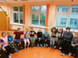 Priešmokyklinės grupės vaikai ,,Kodėlčiukai“ dar praeitų mokslo metų pabaigoje su nuostaba braidė po įsivaizduojamą vandenį, šlavė lapus, sekė gyvūnų pėdsakais, kūrė savo melodijas, susipažino su planetomis, vairavo mašinas ir t.t.