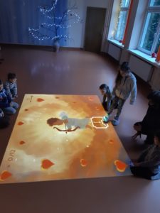 Tai – mąstymą, kūrybiškumą ir saviraišką skatinanti funkcionali šiuolaikinė ugdymosi priemonė. Įstaigos salėje sumontuotos interaktyvios grindys, kurių pakete yra net 52 programos. Judėjimas, lankstumas, orientacija, emocijų raiška, mokymasis pažinti raides ir skaityti, skaičiuoti. Pozityvus bendravimas interaktyvių grindų pagalba padeda atsiskleisti kiekvieno vaiko asmenybei ir lavina pažintinius bei kalbinius gebėjimus. Ši naujovė pagelbsti ir specialiųjų poreikių vaikams lengviau prisitaikyti prie besikeičiančios aplinkos, pasitikėti savimi.