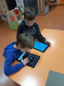 Vaikų sudominimui, pažinimui, komunikacijai ugdyti dar naudojame planšetinius kompiuterius. Jų pagalba vaikai rašo raides, skaitmenis, spalvina, dėlioja dėliones ir kita. Po užsiėmimų aptariama veikla, pasidžiaugiama rezultatais, vaikų pasiekimais, susidraugaujant su išmaniosiomis technologijomis. Tuo pačiu ,,Kodėlčiukai“ ne tik įgyja žinių, bet ir gerina emocinę savijautą, ugdosi tarpusavio bendravimą, supratimą, bendradarbiavimą.