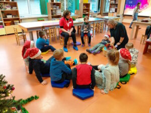 „Angeliukų“ grupėje lankėsi savanorės Vilė ir Lina iš Kupiškio LRK humanitarinio punkto, papasakojo apie savo veiklą. Ir pakvietė vaikus ir tėvelius sudalyvauti prie organizuojamos Kalėdinės gerumo akcijos. Jos tikslas – pradžiuginti sunkiau gyvenančius vaikučius ir vienišus senolius artėjančių švenčių proga.