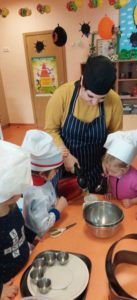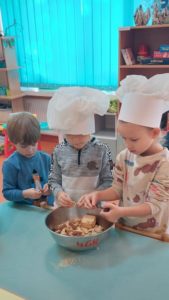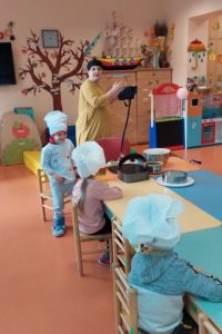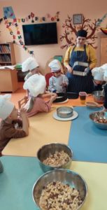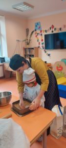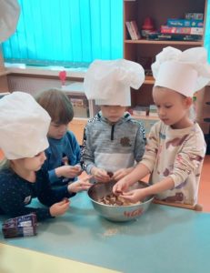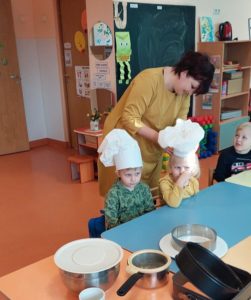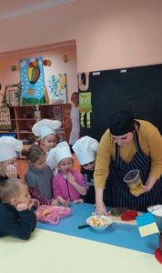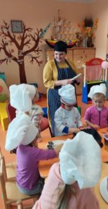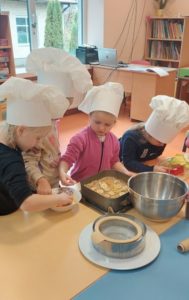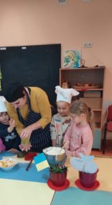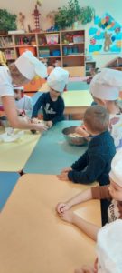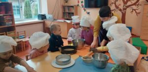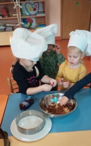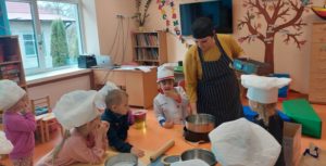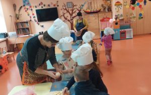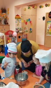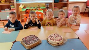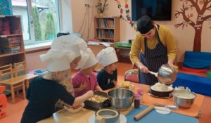 Kai lauke spindulėlių vis mažėja, o šventinės lemputės dar neįžiebtos, pats laikas kepti pyragus. Susibūrusi bendram tikslui, „Kodėlčiukų“ grupės bendruomenė nusprendė, kad ,,Pyragų“ diena– puiki proga pasidalinti gerumu ir šiluma. Vaikai buvo įtraukti į pyragų gamybos veiklą: nuo sausainių trupinimo iki kvapnaus pyrago ragavimo. Veiklos metu mažieji skaičiavo sausainius, pjaustė vaisius ir t.t. Diskutavo, kas yra draugystė, kodėl reikia ir verta rūpintis kitu. Skaniais pyragais, o tuo pačiu ir gerumu, dalijosi su specialiųjų ugdymosi poreikių turinčiais draugais. Patyriminė veikla plėtojo vaikų pažintinę patirtį, gaminimo ir kepimo įgūdžius, džiugias emocijas.
