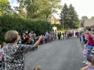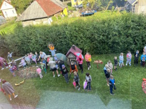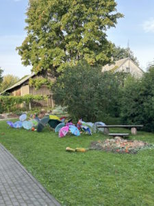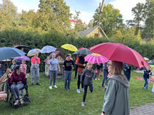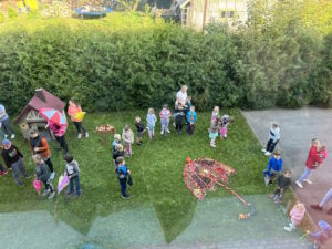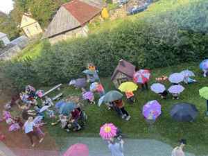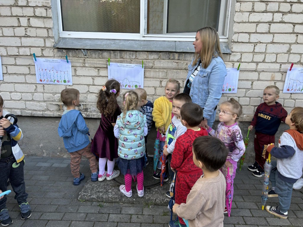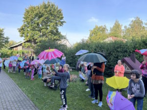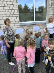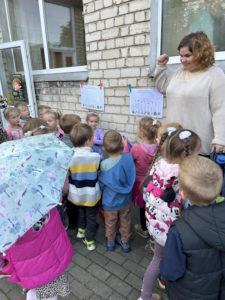Rytmečio metu kiekvienos grupės ugdytiniai pristatė tyrimo-apklausos diagramą, grožėjosi savo ir kitų kūrybiniais darbais. Mokyklos kiemas mirgėjo nuo spalvingų skėčių šokio.