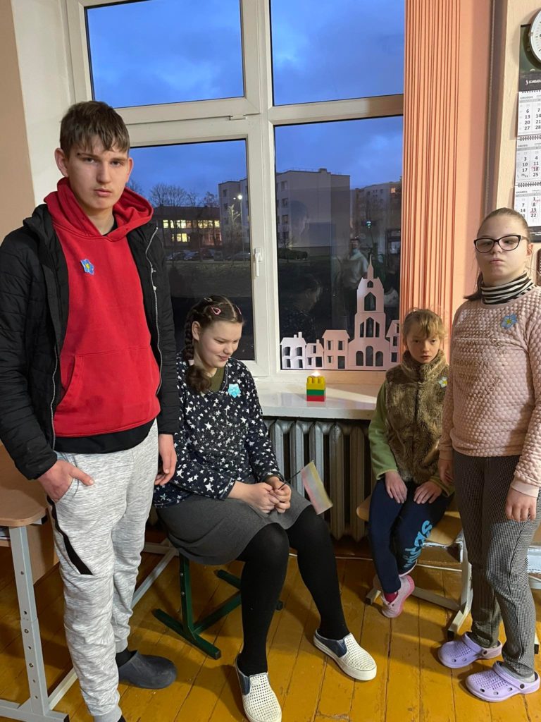 Laisvės gynėjų dienos ryte mokyklos languose sužibo atminimo žvakutės. Mes kasmet dalyvaujame pilietinėje akcijoje ,,Atmintis gyva, nes liudija”.