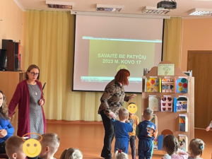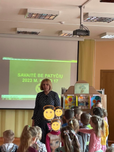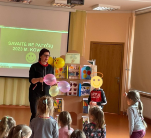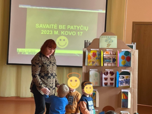 Mūsų mokykla, aktyviai įsitraukė į visoje Lietuvoje kovo 13-17 dieną vykdomą prevencinę akciją „Savaitė be patyčių“. Jos metu buvo skatinama tolerancija, draugiškumas bei pagarba vienas kitam. Visą savaitę buvo gvildenamos draugystės ir bendravimo temos, kalbama apie patyčias, draugystę, supratingumą, rūpestį, pyktį. Vaikai, mokiniai daug sužinojo apie patyčias, taip pat tolerancijos, draugystės svarbą, įgijo pozityvių bendravimo problemų sprendimo gebėjimų. Mokyklos renginio organizatorių grupė kalbino mokyklos administraciją, grupių mokytojas bei vaikus, mokinius išsakyti savo mintis apie patyčias. Savaitės apibendrinimui visi susirinkę salėje, klausėsi išsakytų minčių apie patyčias, grupės pristatė savo kūrybinius darbus bei pūtė pykčio balioną. Kūrybiniai vaikų darbai buvo patalpinti į „Be patyčių namelį“. Organizuodami šią akciją tikimės, kad vaikai, mokiniai labiau įsileis į savo širdeles didžiausias vertybes – toleranciją, draugiškumą ir pagarbą vienas kitam.