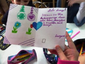 Šiandieną 1-10 lavinamųjų klasių, socialinių įgūdžių ugdymo klasės mokiniai sulaukė 4 b klasės draugų iš P. Matulionio progimnazijos. Juos atlydėjo mokytoja A. Songailienė, su kuria mus sieja ilgametė, graži draugystė. Susirinko gana didelis būrys draugų. Vyko renginys „Pabūkime kartu“. Renginio pradžioje vaikai susipažino, išsakė daug gražių žodžių apie draugystę. Visi, susėdę prie bendro stalo, piešė, aplikavo atvirukus. Atvirukuose parašė ir perskaitė nuoširdžius kalėdinius sveikinimus, palinkėjimus draugams. Esame dėkingi mokiniams, mokytojai Alei, už išsakytus gražius žodžius, už nuoširdų bendravimą, parodytą dėmesį vienas kitam. Šis susitikimas – tai gerų emocijų, draugystės renginys. Viliamės, kad ši draugystė tęsis dar ilgus metus.
