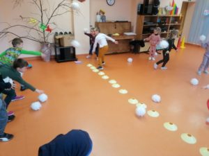 Nuo 9.00 val. sveikatinimo dieną pradėjo priešmokyklinio ugdymo grupės „Kodėlčiukai“ vaikai. Judesio korekcijos pedagogė Virginija Šemetienė ir specialioji pedagogė Edita Kareivienė pakvietė dalyvius žiemos žaidimus pažaisti kitaip, tuo pačiu, pasiūlė vaikams prisiminti garbingo elgesio taisykles bei išmokė įvairių estafečių ir žaidimų, pritaikytų pagal vaikų amžių. Vaikai smagiai „kovėsi“ „Sniego kare“, lavino slidinėjimo lauke įgūdžius, žaisdami „Čiuožėją“, mokėsi saugiai įveikti estafetės „Kliučių ruožą“, lavinosi vikrumą bei pastabumą, rinkdami spalvotas „Kepurėles“, bendradarbiavo, lavino komandinio darbo įgūdžius, žaidime „Surask porą“. Linksmai ir sportiškai nusiteikę, į veiklas įsijungė „Angeliukai“, „Bitutės“, „Vaivoriukai“, „Drugeliai“, „Kūlverstukai“, „Šnekučiai“.