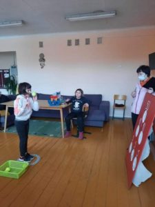Mokykloje veikianti mokytojų grupė, atsakinga už vaikų sveikatinimą, norėdama paskatinti vaikus ir mokinius sportuoti ir žaisti lauke žiemos žaidimus, vasario 22d. suorganizavo sveikatinimo veiklų dieną „Žiemos pramogos“. Kadangi oro sąlygos nebuvo palankios sportuoti lauke , sveikatinimo veiklos persikėlė į įstaigos salę.