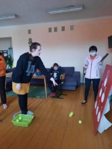 1 -4 ir 5-10 jungtinių lavinamųjų klasių mokiniai bei socialinių įgūdžių klasės jaunuoliai varžėsi smiginio ir baudų mėtimo rungtyse.