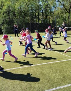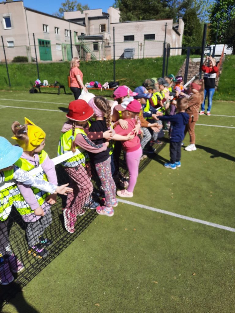 Saulėtą ir šiltą gegužės 12-osios dieną teniso aikštelėje prie Kupos upės susitikome su draugais ,,Pelėdžiukais‘‘ iš ,,Saulutės‘‘ l/d. Šios dienos žaidimai suteikė daug teigiamų emocijų, gražaus bendravimo tarpusavyje. Po gražios judrios veiklos vaikai vieni kitus vaišino įvairiais vaisiais. Atsisveikindami vieni kitiems palinkėjo gražios ir saugios vasaros.