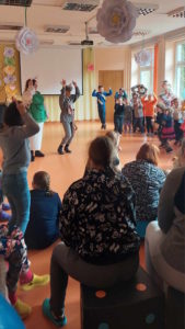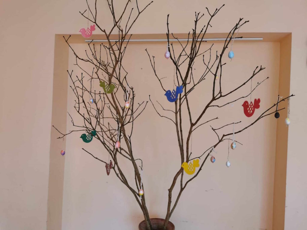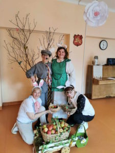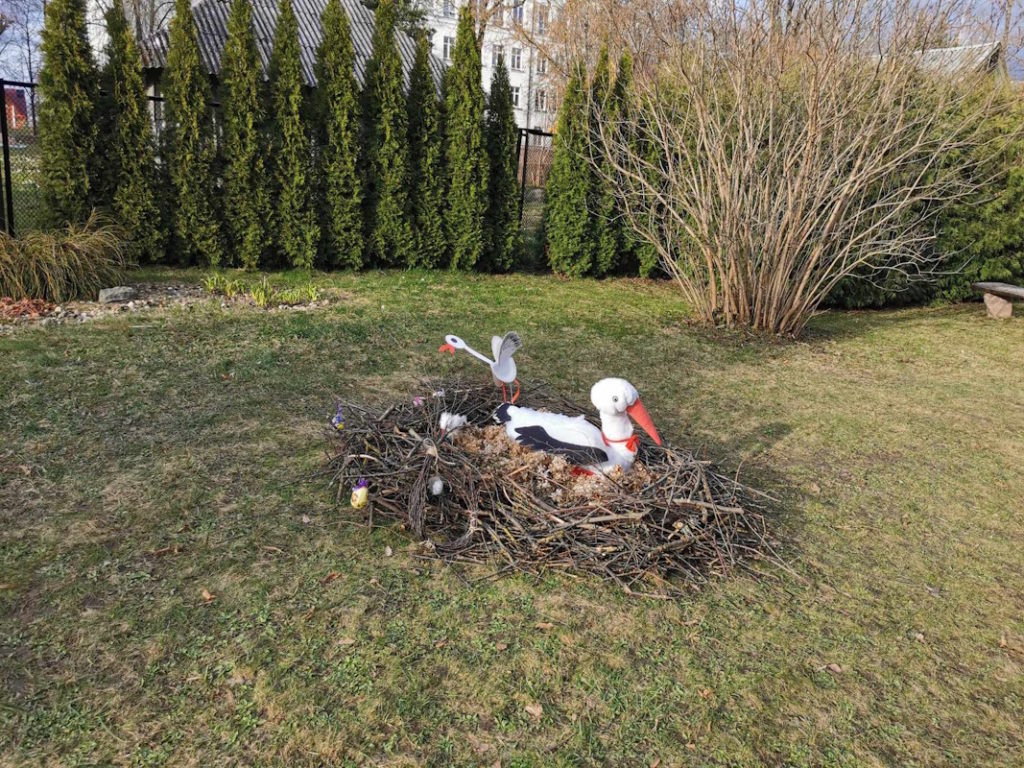 Belaukiant Šv. Velykų įstaigos kiemas ir vidaus erdvės buvo ne tik švarinami bet ir  puošiami margučiais, kiškiais, į lizdą nutūpė ir gandras su gandriukais. Savaitės viduryje sutikome ir pačią „Velykų bobutę“.