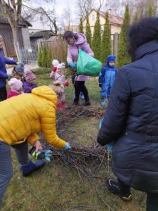 Pro langus šviečiantys saulės spinduliai kviečia mus vis dažniau išeiti į lauką ir imtis darbo. Kiekvienas norime pasitikti pavasarį ir džiaugtis saule švarioje aplinkoje. Todėl savaitė prasidėjo darbingai. Kovo 25 dieną dalyvavome akcijoje „Švari žemė-pavasaris širdyje“, kurios metu taip pat paminėjome „Žemės dieną“. Kalbėjome apie tai, kokia  svarbi yra žemė, mylima, ir reikalinga švari. Todėl ypatingas dėmesys buvo skiriamas atliekų rūšiavimui. Akcijos metu gražinome savo įstaigos kiemą, rinkome medžių šakeles, iš kurių susukome gandrui lizdą. Belaukiant gandro sušokome ne vieną ratelį, bei linksminomės žaisdami žaidimus.