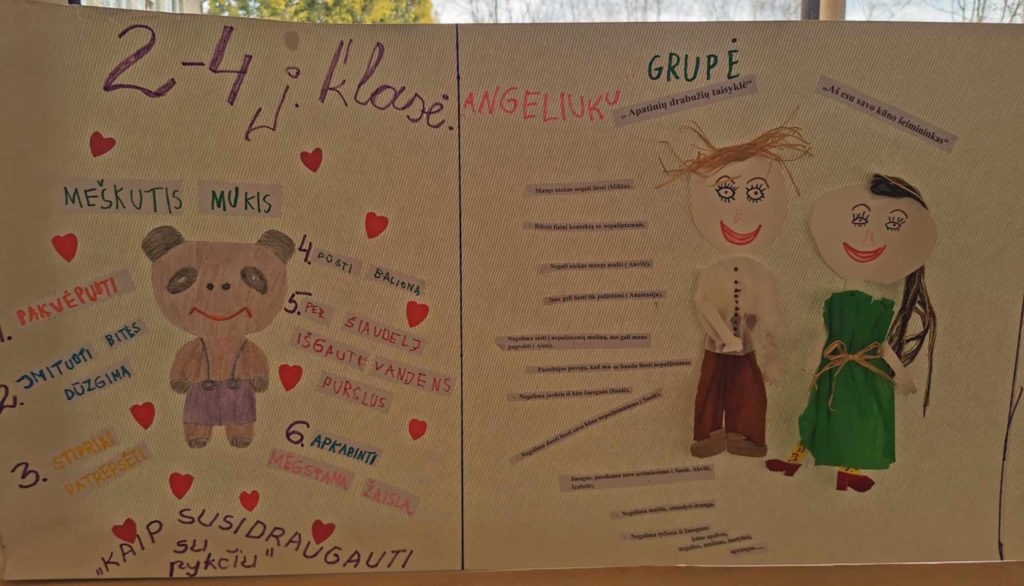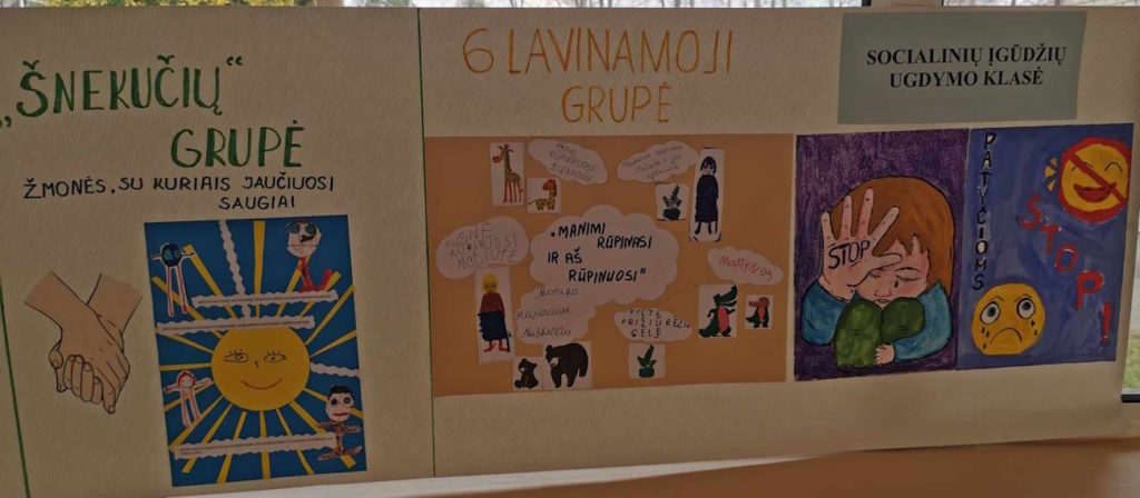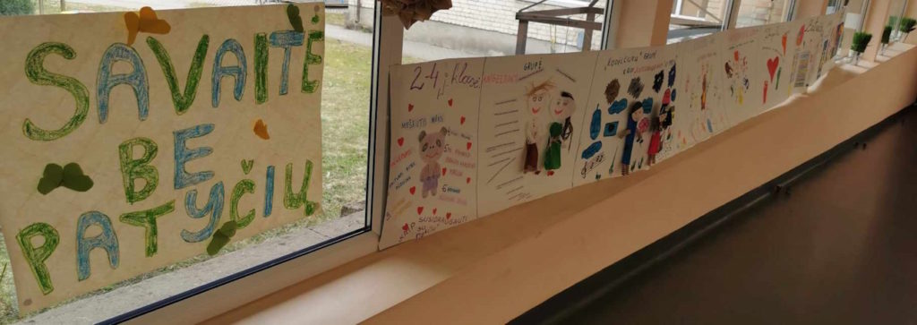 Vaikai ir mokiniai, pasirinkę aktualią temą, diskutavo, atliko pateiktas užduotis, daug sužinojo apie patyčias, tolerancijos ir draugystės svarbą, bendravimo problemų sprendimo galimybes ir būdus. Savaitės apibendrinimui sukurtas kūrybinių darbų plakatas „SAVAITĖ BE PATYČIŲ“ eksponuotas mokyklos „Šviesiajame prospekte“.
